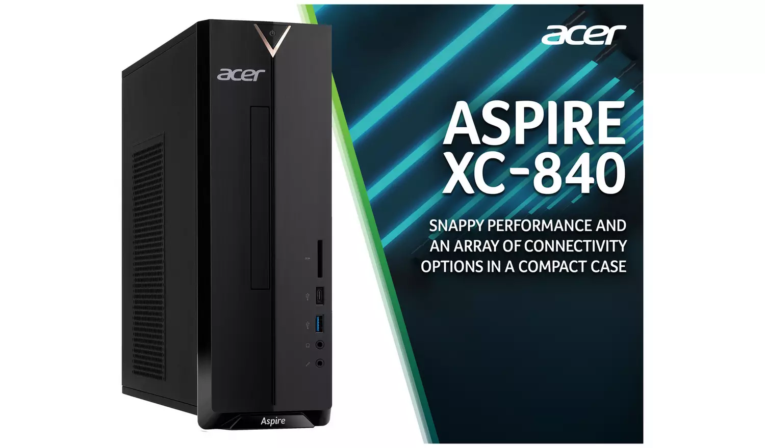 This exclusive Acer desktop & monitor gives you a complete PC that’s ready to use right away. The Acer XC-840 desktop has an Intel Pentium CPU and 8GB of RAM, so you can multi-task without slowing down. There’s also a 256GB SSD to store all your apps & files. It manages to fit all this into a compact 8 litre case that can fit discretely on or under your desk. You also get a 24-inch KA242YH monitor, which has a Full HD resolution for plenty of sharp detail, as well as a refresh rate of 100Hz so even high-speed action stays smooth and blur-free.