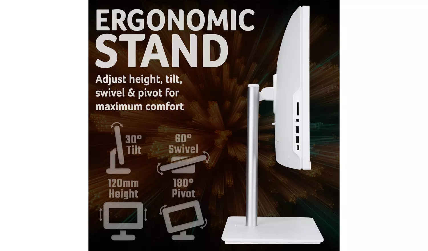 Ergonomic Stand: Customize your viewing experience with the adjustable stand that allows you to pivot, tilt, swivel, and change the height to find your ideal angle.